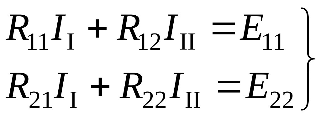 Для этих контурных токов записывают стандартную систему уравнений, которая для случая двух независимых контуров имеет вид: