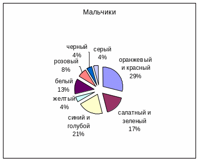 Среди юношей было проявлено большее разнообразие цветовлечений, чем среди девушек.