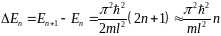 Спектр энергии оказался дискретным. Оценим расстояния между соседними уровнями. Разность энергий двух соседних уровней равна