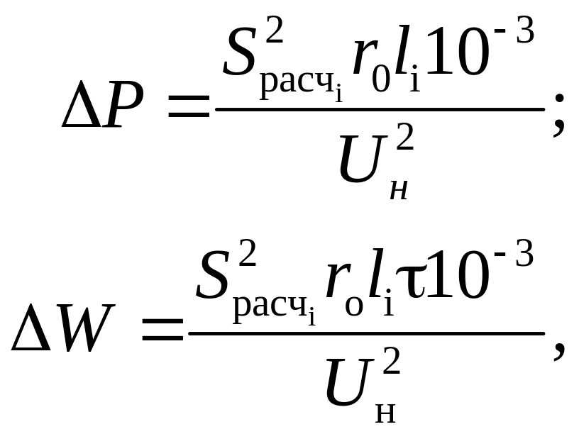 Потери электрической мощности P и энергии W для участков ВЛ 3510 кВ определяются по формулам: