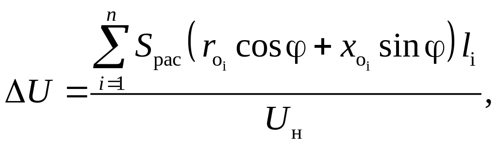 Потеря напряжения для ВЛ 0,38 кВ рассчитывается по формулам: