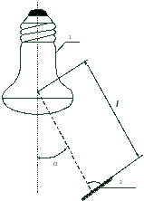 где l – расстояние от тела накала лампы (1) до фотоэлемента люксметра (2).