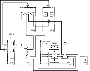 После стабилизации режима работы (3-4 мин), вращая регулировочную рукоятку автотрансформатора А1, снижайте напряжение на выходе автотрансформатора А1 с 240 В до значения, при котором люминесцентная лампа погаснет. Вольтметры измеряют напряжение UЛБ и UЛ. Соответственно, лампы с балластом и чисто на лампе, а амперметр ток I люминесцентной лампы. Показания блока Р1 заносятся в таблицу 2.7.