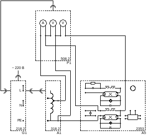 Установите напряжение U на выходе автотрансформатора А1 240 В.