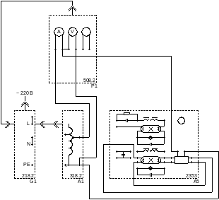 Соедините гнезда защитного заземления " " устройств, используемых в эксперименте, с гнездом "РЕ" однофазного источника питания G1.