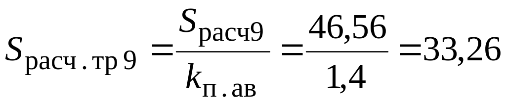 Расчетная мощность трансформатора на ПС9 составляет: