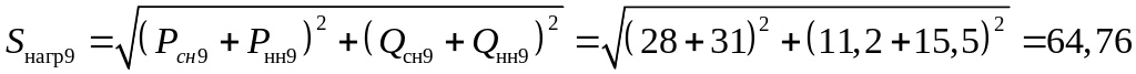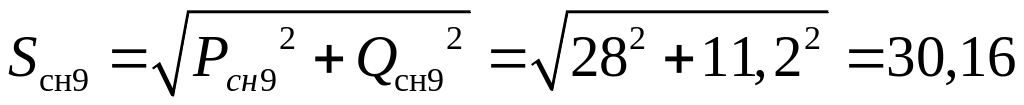 Определяем мощность нагрузки ПС9: