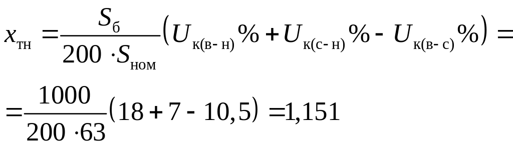 Рассчитываем параметры схемы замещения. Расчет ведем в относительных единицах с приближенным учетом коэффициентов трансформации.