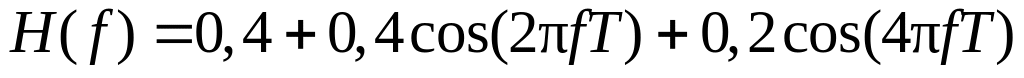Ha=abs(2/5+2/5*cos(2*pi*f*T)+1/5*cos(4*pi*f*T)); % Расчет АЧХ
