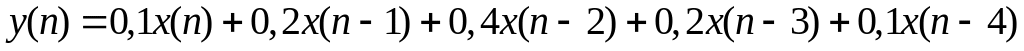 Y(n)=0.1*X(n)+0.2*X(n-1)+0.4*X(n-2)+0.2*X(n-3)+0.1*X(n-4);