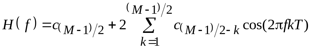 В таблице вариантов указаны два набора коэффициентов ci, определяющих фильтры двух различных типов (называемых далее a и b). Значения коэффициентов первого набора симметричны относительно центрального коэффициента, а второго – антисимметричны (т. е. имеют симметрию со знаком минус). Амплитудно-частотные характеристики (АЧХ), показывающие зависимость коэффициента передачи фильтров от частоты, для таких двух типов фильтров определяются соответственно выражениями: