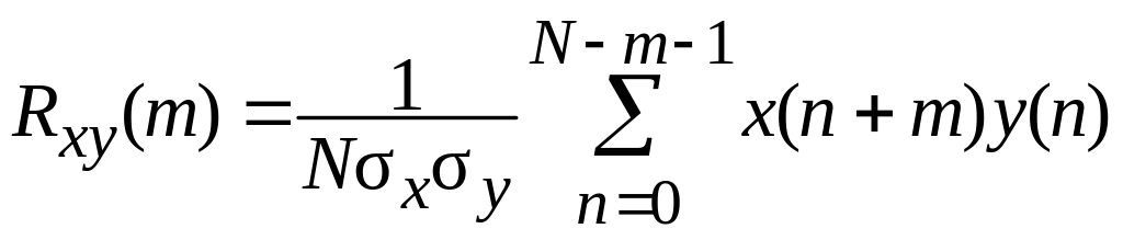 где x(n) и y(n) – отсчеты двух сигналов, N – число отсчетов для каждого из них, m – число сдвигов, а σx и σy – среднеквадратичные отклонения.