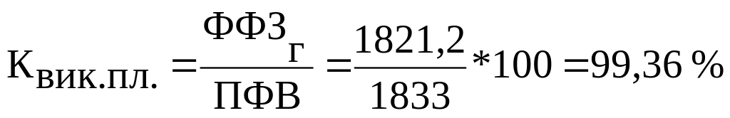 - фактичний фонд у звітному періоді (ФФЗг) 1821,2 ч на 1 робітника (232*7,85=1821,2).