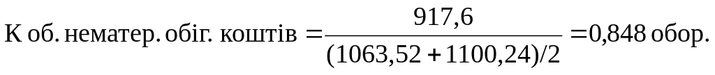 4. Коефіцієнт обіговості нематеріальних обігових коштів: