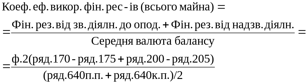 Коефіцієнт ефективності використання фінансових ресурсів (всього майна) характеризує кількість прибутку від звичайної діяльності до оподаткування та надзвичайного прибутку, на 1 грн. майна (капіталу).