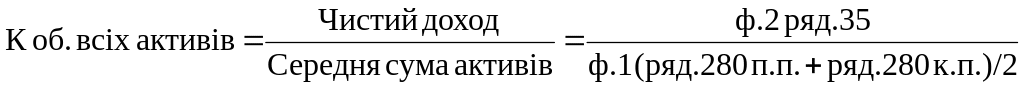 Всі наведені показники визначаються відношенням чистого доходу (виручки) від реалізації до середніх залишків відповідних активів і називаються коефіцієнтами обіговості.