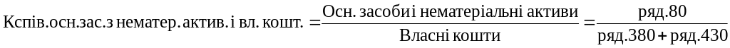 3. Коефіцієнт співвідношення основних засобів з нематеріальними активами і власними коштами:
