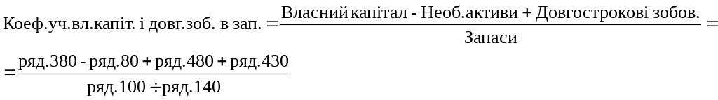 в % до довгострокових та поточних зобов’язань ((ряд.520ряд.610)*100/(ряд.480 +ряд.620)) |