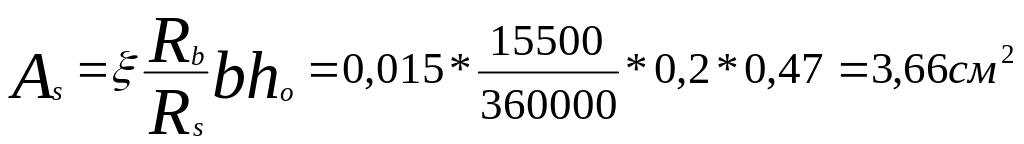 Значение относительной высоты сжатой зоны бетона ξ для балок 0,3…0,4. Принимаем ξ=0,35.