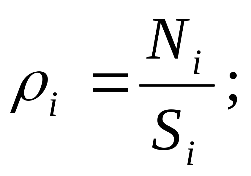 Для каждого района рассчитывается плотность населения pi: