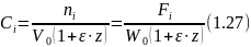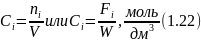 Концентрация соответственно для периодических и непрерывных процессов определяется как отношение мольного количества (мольного потока) вещества к объему V (л или м3) или к объемному потоку W (л/час или м3/час), в котором равномерно распределено данное вещество: