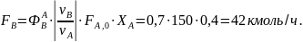 Из формулы (1.19.2) при условии, что FВ,0=0 кмоль/ч, находят количество образовавшегося оксида этилена: