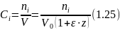 и является положительным при увеличении объема смеси вовремя реакции и отрицательным при его уменьшении. Тогда текущая концентрация вещества равна:
