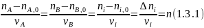 Из уравнений (1.3) следует, что мольное соотношение образующихся или расходуемых веществ при простых реакциях равно соотношению стехиометрических коэффициентов этих веществ в уравнении реакции: