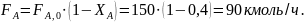 где Fi – мольный поток, моль/время или кмоль/время; t – время, за которое подают или выводят из реактора ni молей вещества.