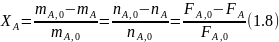где ni и ni,0, Fi и Fi,0 ‒ мольные количества или мольные потоки веществ соответственно в любой момент реакции и в исходной смеси.