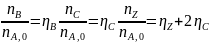 5. Напишите уравнения расчета количества реагентов А и Y, а также продуктов реакции В и Z через степень конверсии реагента А.