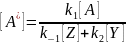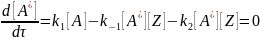 Если превращение А* в конечный продукт происходит значительно медленнее его обратного превращения в А, т.е. k2[ Y] <<k-1[ Z], то лимитирующей является вторая стадия. В этом случае, слагаемым k2[ Y] в знаменателе можно пренебречь, и уравнение принимает вид: