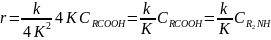 Подставляя найденные концентрации свободных форм кислоты и аммиака в исходное кинетическое уравнение, получают: