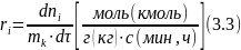 В гетерогенно каталитических реакциях активную поверхность, на которой протекает реакции, определить, как правило, трудно. Поэтому скорость гетерогенно-каталитических превращений i‒ого вещества обычно относят к массе катализатора mК: