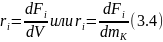 При проведении химической реакции в потоке при стационарных условиях скорость реакции по i‒му веществу определяют как производную мольного потока i-ого вещества (Fi) по реакционному объему (для гомофазных реакций) или к массе катализатора (для гетерогенно-каталитических реакций) при химических превращениях: