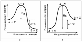 Рис. 3.1. Энергетические диаграммы химических реакций А + Y → B + Z: а – экзотермической, б – эндотермической