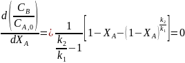 Из уравнения (7.11) видно, что при ХА= 0 и ХА= 1 СВ/СА,0= 0, что говорит о наличии максимума. Его положение можно найти приравнивая к нулю производную