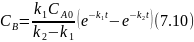 При интегрировании уравнения (7.9) при начальных условиях СА= СА0, СВ = 0, t = 0 получаем зависимость накопления продукта В во времени.