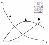 Процесс продолжается до тех пор, пока концентрация продукта В не увеличится настолько, что он начнет поглощать больше энергии, чем исходное вещество. В данный момент концентрация продукта В достигнет максимума. После этого превращение продукта В в продукт D будет протекать быстрее, чем его образование из реагента А, и следовательно, концентрация продукта В в массе снизится. Типичные кривые изменения концентраций реагента А, продуктов В и D в реакционной массе в ходе реакции показаны на рис. 7.2.