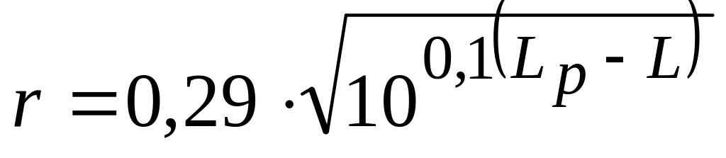 В случае, когда рабочее место расположено в открытом пространстве, то также определяется расстояние , м, от источника до рабочего места, при котором будет выполняться требование норм при Т=8 ч, по формуле: