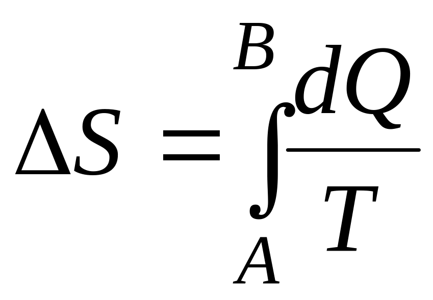 Энтропия есть функция состояния системы, дифференциал которой при элементарном обратимом процессе равен отношению бесконечно малого количества теплоты, сообщенного системе, к абсолютной температуре последней. При переходе системы из состояния А в состояние В изменение энтропии равно