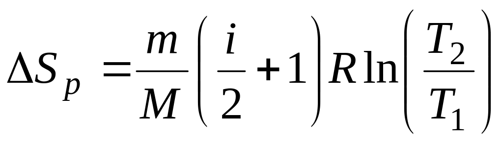 Изменение энтропии 1 моля идеального газа при переходе из состояния 1 в состояние 2:
