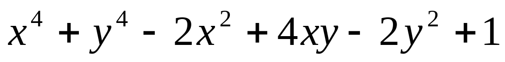 f = (x(1) ^ 2 + x(2) ^ 2 –3)^2 – 3)^2 + (x(1) ^ 2 + x(2) ^ 2 –2* x(1) – 3)^2 + 1;