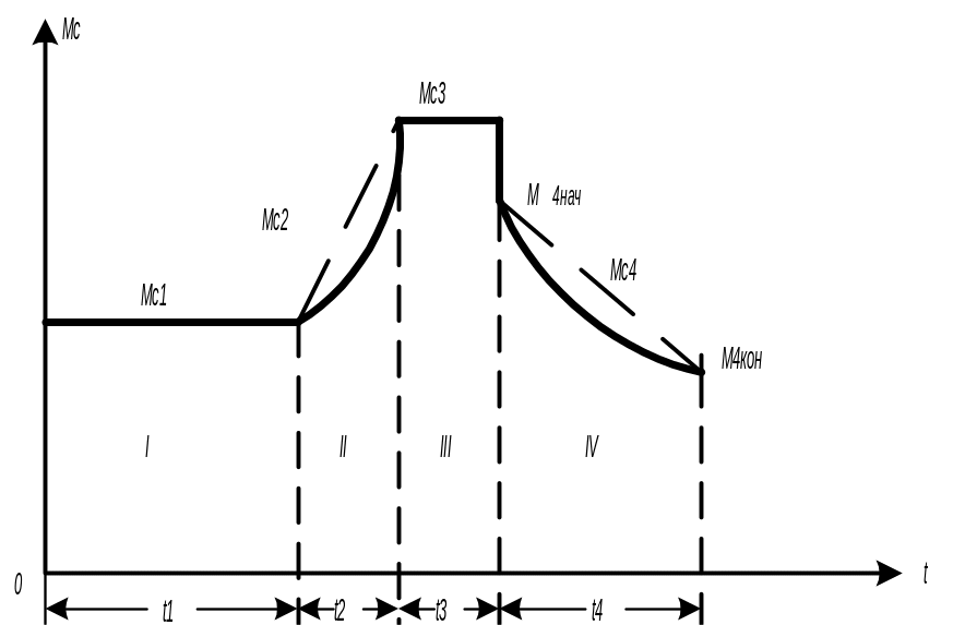 Зная моменты и время каждой, стадии строят нагрузочную диаграмму (рис. 2.2).
