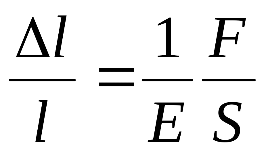 Пусть к концам однородного стержня длиной l и площадью поперечного сечения S приложена сила F. Опыт показывает, что возникающее под действием приложенной силы относительное изменение длины стержня l/l при упругой деформации пропорционально силе, приходящейся на единицу площади поперечного сечения стержня. Закон Гука в этом случае можно записать в виде: