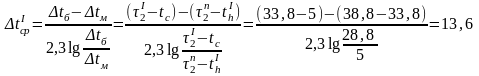 12. Среднелогарифмическая разность температур между греющей и нагреваемой водой для I ступени