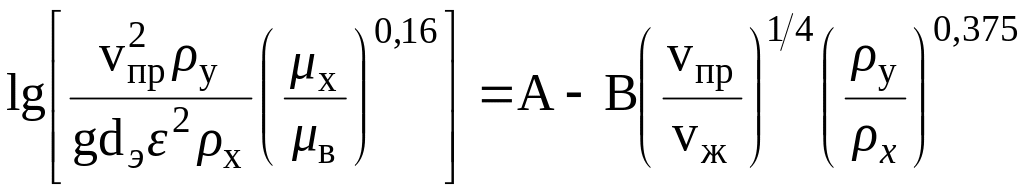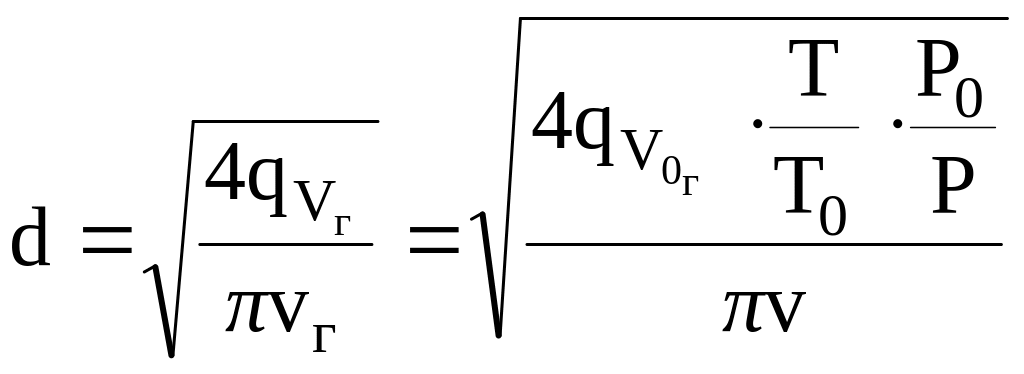 Решая это уравнение относительно предельной скорости движения газа определяем ее значение. После определения скорости определяем диаметр аппарата: