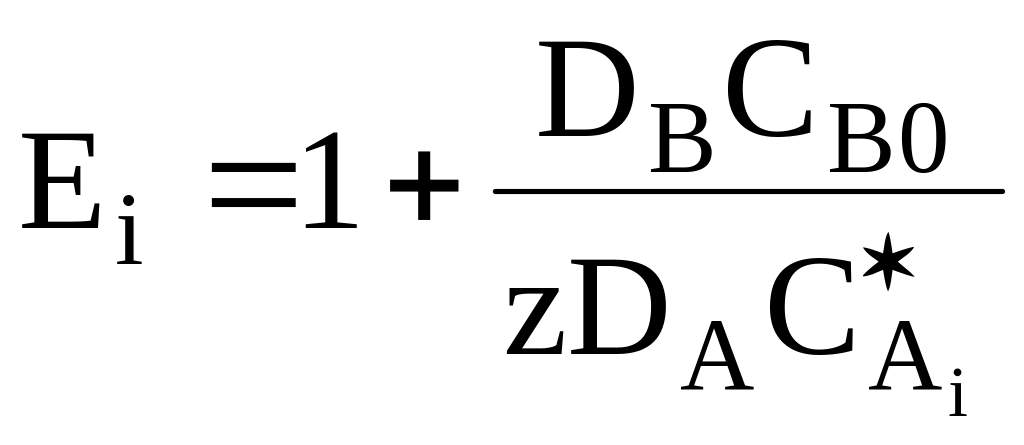 Коэффициент ускорения абсорбции в жидкой фазе при протекании химической реакции равен: