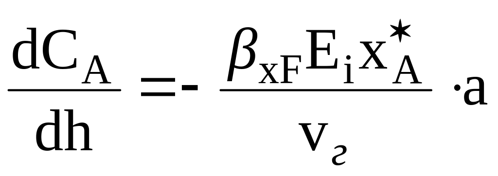 Насадочная колонна представляет собой объект, в котором противотоком движутся жидкая и газовая фазы. Газовая снизу вверх, жидкая сверху вниз. Примем, в первом приближении, что обе фазы движутся в режиме идеального вытеснения. Уравнения для расчета изменения концентрации поглощаемого компонента в газовой фазе имеет вид: