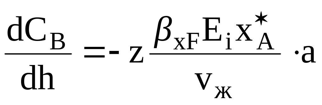Уравнение для расчета концентрации реагента в жидкой фазе имеет вид: